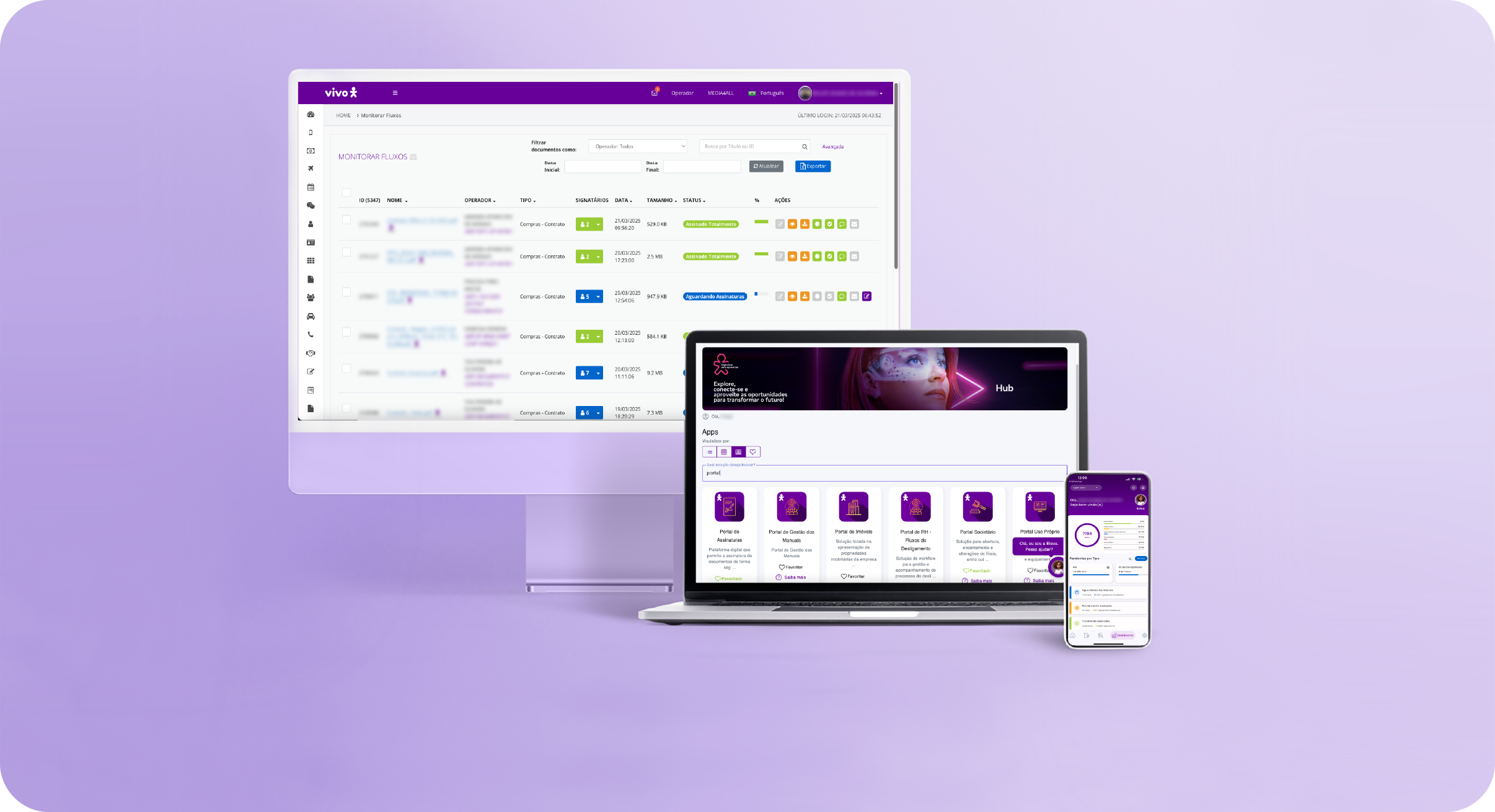 Uma plataforma web e aplicativo que promove a gestão digital de contratos e a assinatura de documentos, alinhada ao propósito Digitalizar para Aproximar da Vivo. Com fluxos personalizados, conecta-se aos sistemas e módulos da empresa, aumentando a produtividade, otimizando a organização de dados e garantindo uma gestão sem papel, ágil, eficiente e segura.